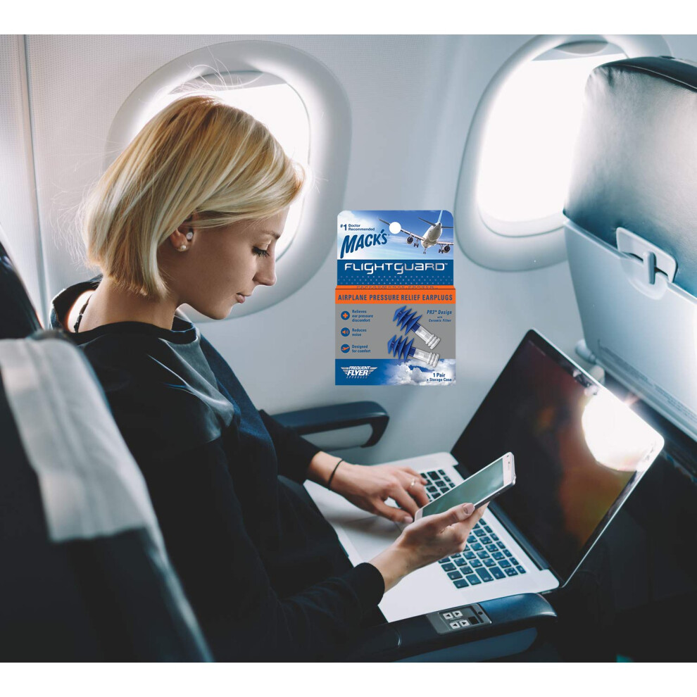 Mack's Flightguard Airplane Pressure Relief Earplugs - 26dB NRR - Comfortable, Safe, Travel Ear Plugs
