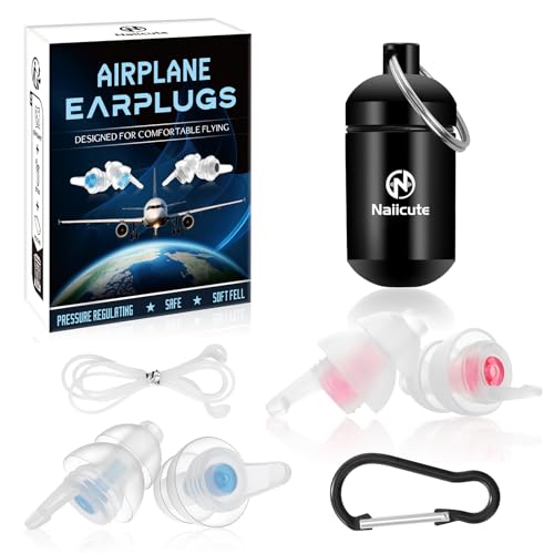 Earplugs for Flying with Lanyard -Regulate Air Pressure & Prevent Ear Pain- Airplane Travel Essentials-Comfy Reusable Flight Ear Plugs for Adult/Kid 12 YRS+, 25dB Noise Reducing Hearing Protection,PK