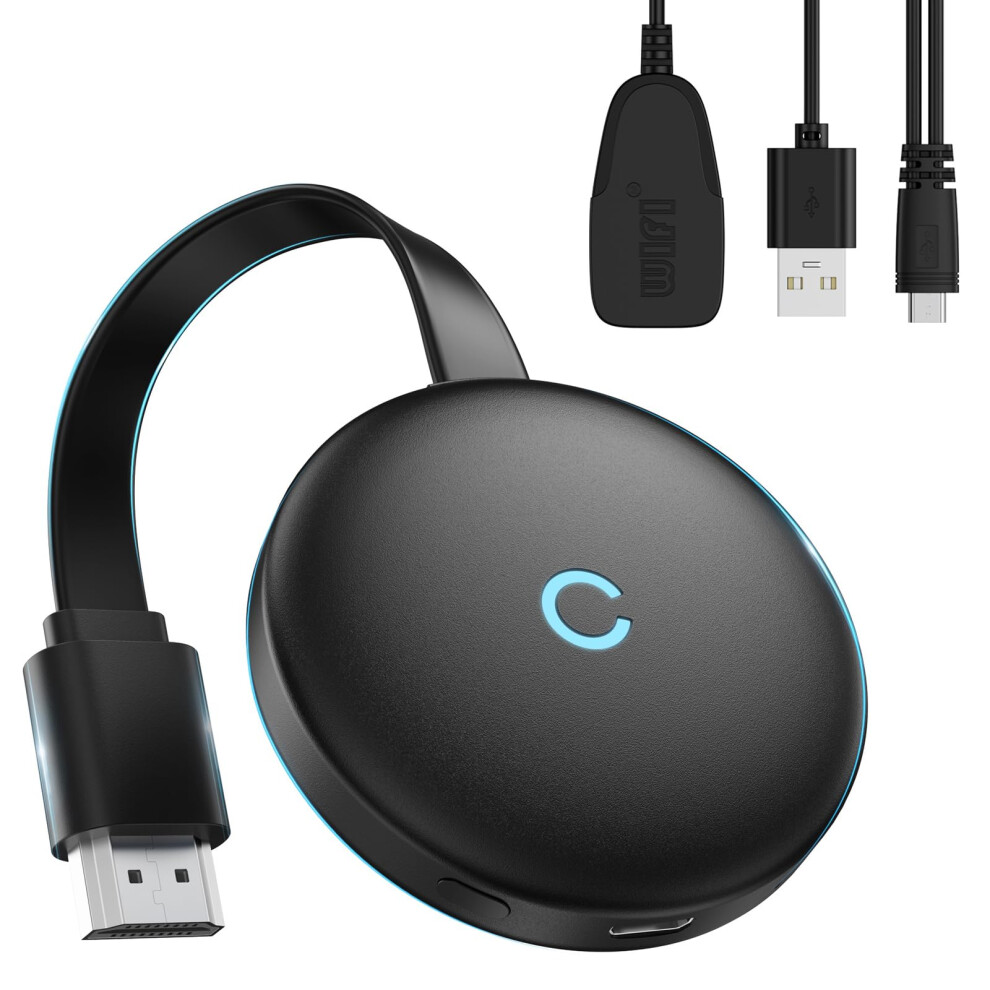 WiFi Display Dongle / Miracast Airplay DLNA Display Receiver Dongle Wireless Mirroring Screen Device with 2 in 1 USB Cable (Black)