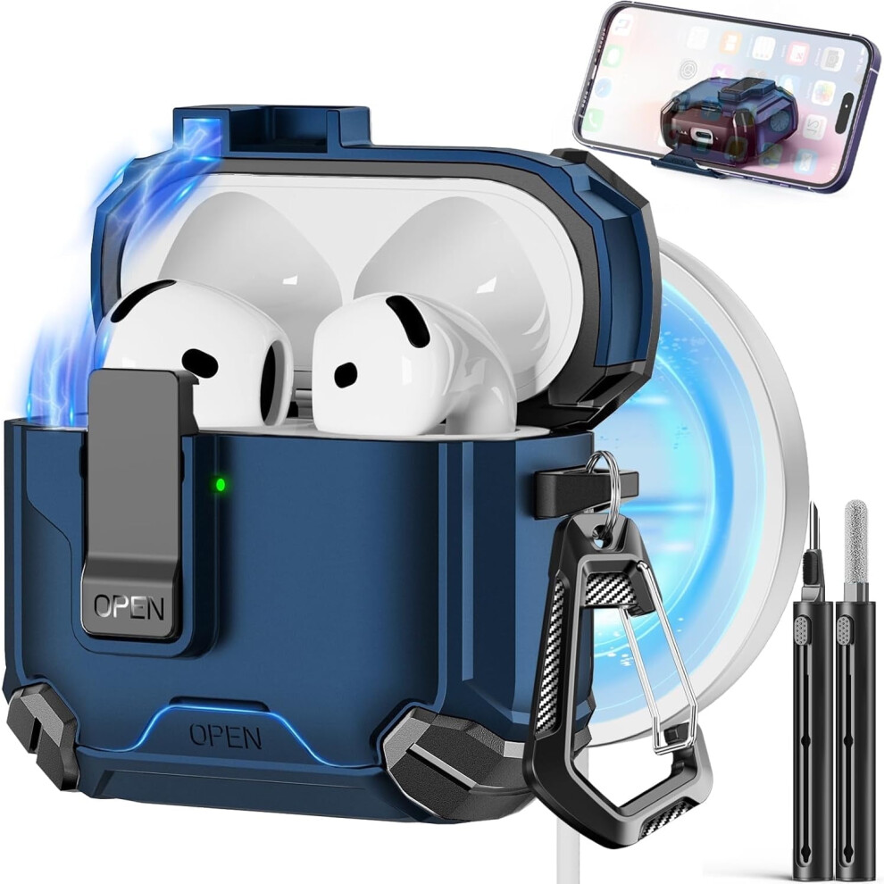 Compatible with AirPods 4th Gen Case, MagSafe, Magnetic Auto-Lock, Phone Stand & Cleaning Kit â for AirPods 4 w/ ANC (2024)