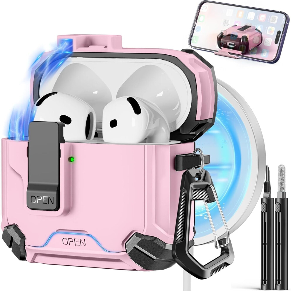 Compatible with AirPods 4th Gen Case, MagSafe, Magnetic Auto-Lock, Phone Stand & Cleaning Kit for AirPods 4 ANC Charging Cover (2024)