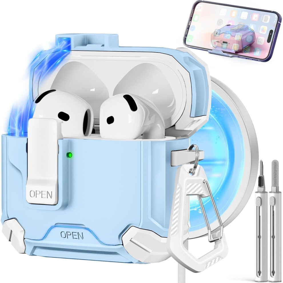 Compatible with AirPods 4th Gen Case, MagSafe, Magnetic Auto-Lock, Phone Stand & Cleaning Kit for AirPods 4 w/ ANC (2024)