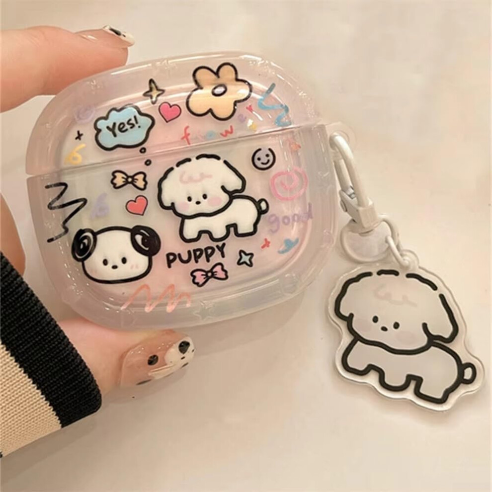 Cute Kawaii DogsFlowersProtective case for Airpods with funny accessories (Airpod Pro 2 (Airpod 4 (6.))