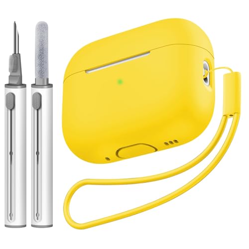 Tandoler Compatible with Airpods Pro 2 Case, Soft Silicone Skin Cover Protective Cases with Cleaner kit and Lanyard Compatible for AirPod Pro 2nd Generation, Front LED Visible-Yellow