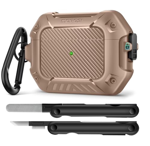 MOBOSI for AirPods Pro Case with Cleaner Kit, Compatible with Airpod Pro 2 Case 1st/2nd Generation with Lock & Keychain, Full Body Shockproof Protective Cover (2023/2022/2019), Brown