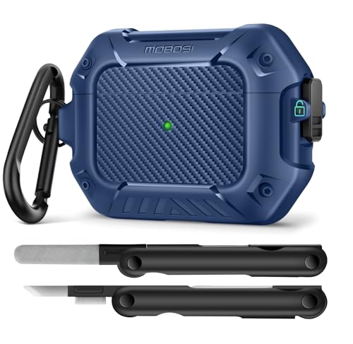 MOBOSI for AirPods Pro 2 Case Cover with Lock & Cleaner Kit & Keychain, Compatible with Airpod Pro Case 2nd/1st Gen Military Grade Shockproof Protective Hard Shell for Men(2023/2022/2019), Blue