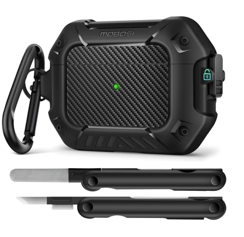 MOBOSI for AirPods Pro 2 Case Cover with Lock & Cleaner Kit & Keychain, Compatible with Airpod Pro Case 2nd/1st Gen Military Grade Shockproof Protective Hard Shell for Men(2023/2022/2019), Black