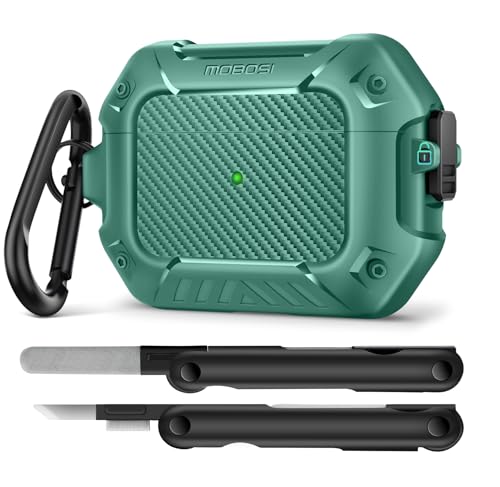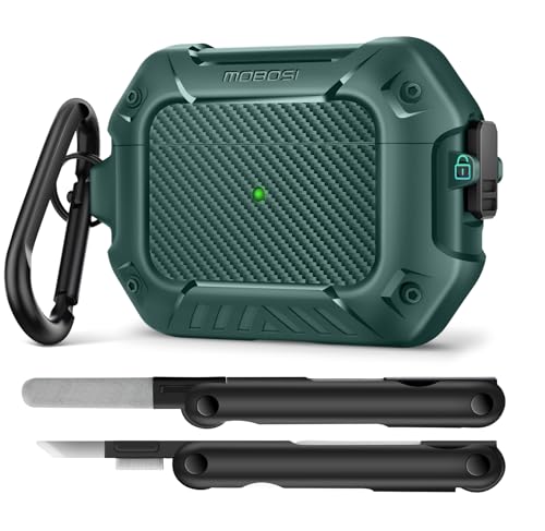 MOBOSI for AirPods Pro Case with Cleaner Kit, Compatible with Airpod Pro 2 Case 1st/2nd Generation with Lock & Keychain, Full Body Shockproof Protective Cover (2023/2022/2019), Green