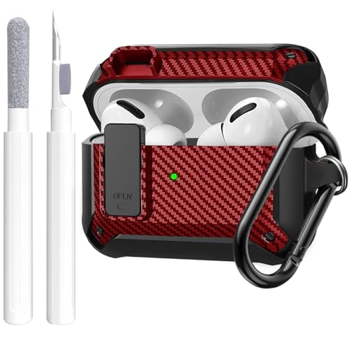 OTOPO for Airpods Pro 2/1 Case Cover with Lock Clip (2019/2022/2023), Rugged Case for Airpod Pro 2nd/1st Generation Shockproof Protective Skin with Keychian&Cleaning Kit for Apple iPod Pro, CF Red