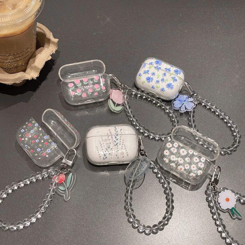 Fashion Flower Glitter Shiny Case For AirPods 1 2 3 4 Wireless Bluetooth Earphone Bracelet Cover For Apple airpods Pro 2nd Funda