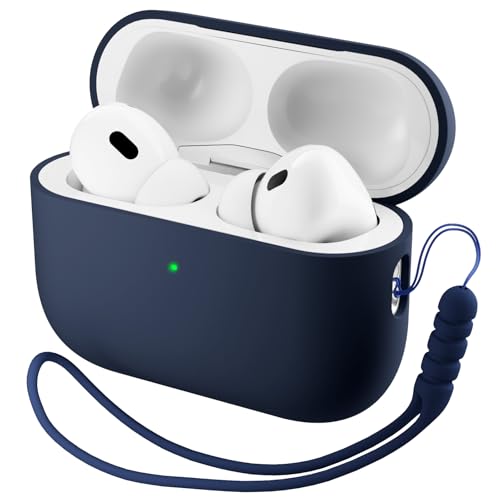 ORNARTO Compatible with Airpods Pro 3 Case (2025), Protective Liquid Silicone Case Cover for Airpods Pro 3nd Generation with Lanyard Soft Skin Front LED Visible-Navy Blue