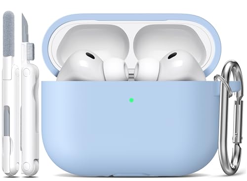 R-fun for AirPods Pro 3 Case (2025), Soft Silicone Protective Case Cover Compatible with Apple AirPods Pro 3rd Generation (USB-C Cable) for Women Men with Cleaning Kit and Keychain, Sky Blue
