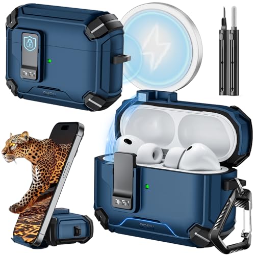 Inesore for AirPods Pro 3 Case (2025) with Phone Stand Design, Compatible with MagSafe, Auto-Locking Case Cover for Air Pods Pro 3rd with Cleaning Kit & Keychain, Blue