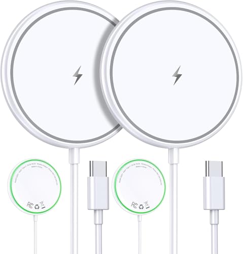 Magnetic Wireless Charger 2 Pack Mag-Safe Charger 15W Fast Charging Pad Compatible with iPhone 16/15/14/13/12 Series and Airpods 4/3/2/Pro/Pro2 LED magnetic charger with Dual Charging Ports