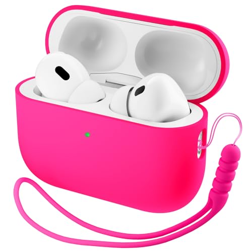 ORNARTO Compatible with Airpods Pro 3 Case (2025), Protective Liquid Silicone Case Cover for Airpods Pro 3nd Generation with Lanyard Soft Skin Front LED Visible-Hot Pink