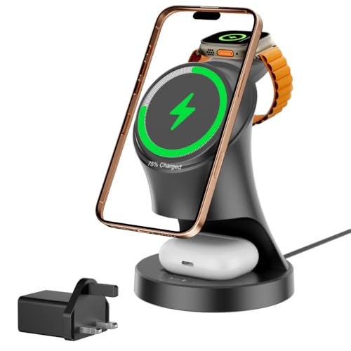 MagSafe Charger, Anker MagGo Charger (3-in-1 Station), MFi-Certified 15W Max Fast Charging, Compatible with iPhone 16/15/14/13/12, Apple Watch S8/7/6, AirPods 3/Pro (30W USB-C Charger Included)