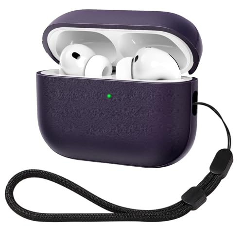 ACRONIX Compatible with Airpods Pro 3 Case (2025), TPU Leather-Touch Shockproof Protective Cover for Airpods Pro 3nd Generation with Lanyard Front LED Visible-Purple