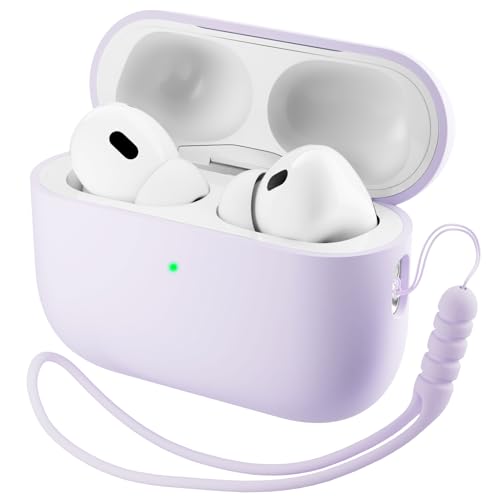ORNARTO Compatible with Airpods Pro 3 Case (2025), Protective Liquid Silicone Case Cover for Airpods Pro 3nd Generation with Lanyard Soft Skin Front LED Visible-Pastel Lilac