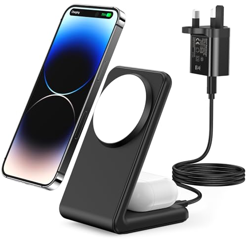 Meifigno 2-in-1 for Magsafe Charger Stand with [PD3.0 20W USB-C Charger Block & Cable] - Fast Charging Wireless Charger for iPhone 17/16/15/14/13/12 Pro Max, AirPods 3/Pro 2/Pro, Black