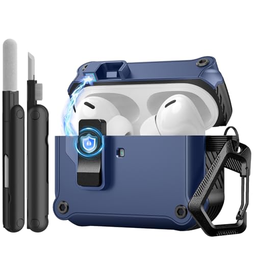TiMOVO Case for Airpods Pro 3 (2025) with Secure Lock Clip, Automatic Pop-up Full Drop Protective Hard Cover for Apple AirPod Pro 3rd Generation with Climbing Hook & Cleaning Kit, Blue+Black