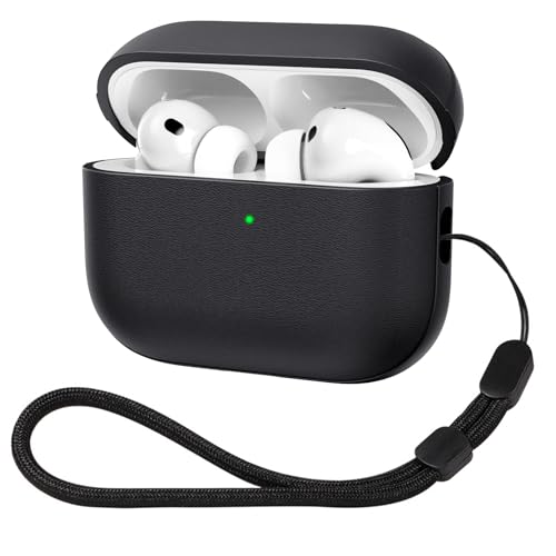 ACRONIX Compatible with Airpods Pro 3 Case (2025), TPU Leather-Touch Shockproof Protective Cover for Airpods Pro 3nd Generation with Lanyard Front LED Visible-Black
