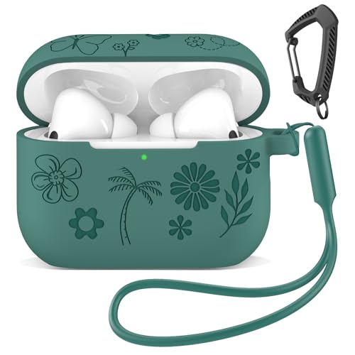 MATEPROX Silicone Case Compatible with AirPods Pro 3, Anti-Drop Portable Earphone Protective Cover with Keychain and Lanyard for AirPods Pro 3th Generation 2025-Pine Green