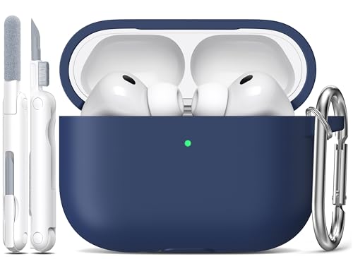 R-fun for AirPods Pro 3 Case (2025), Soft Silicone Protective Case Cover Compatible with Apple AirPods Pro 3rd Generation (USB-C Cable) for Women Men with Cleaning Kit and Keychain, Midnight Blue
