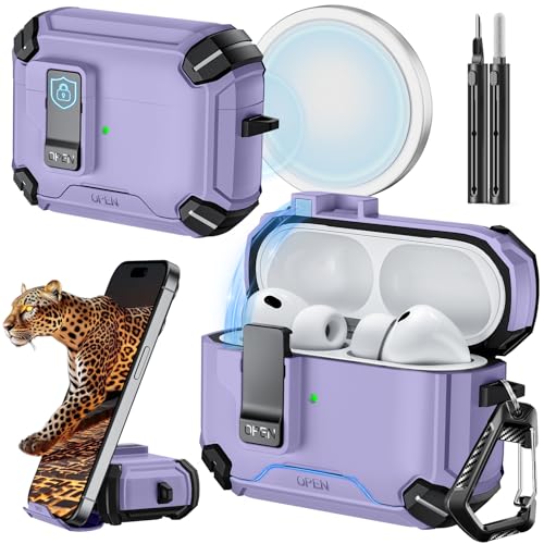 Inesore for AirPods Pro 3 Case (2025) with Phone Stand Design, Compatible with MagSafe, Auto-Locking Case Cover for Air Pods Pro 3rd with Cleaning Kit & Keychain, Purple