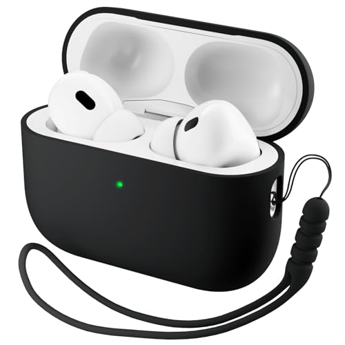 ORNARTO Compatible with Airpods Pro 3 Case (2025), Protective Liquid Silicone Case Cover for Airpods Pro 3nd Generation with Lanyard Soft Skin Front LED Visible-Black
