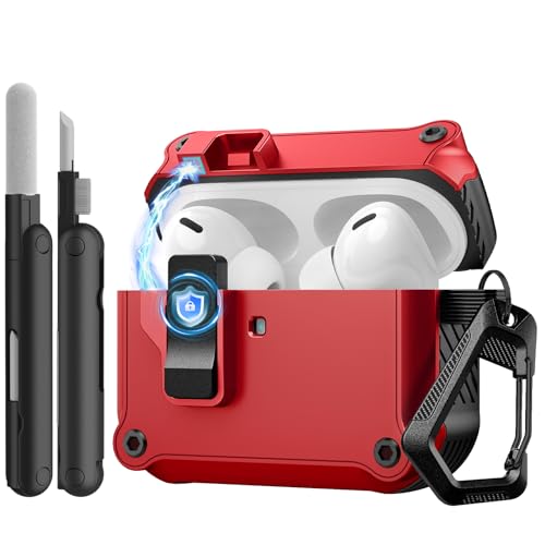 TiMOVO Case for Airpods Pro 3 (2025) with Secure Lock Clip, Automatic Pop-up Full Drop Protective Hard Cover for Apple AirPod Pro 3rd Generation with Climbing Hook & Cleaning Kit, Red+Black