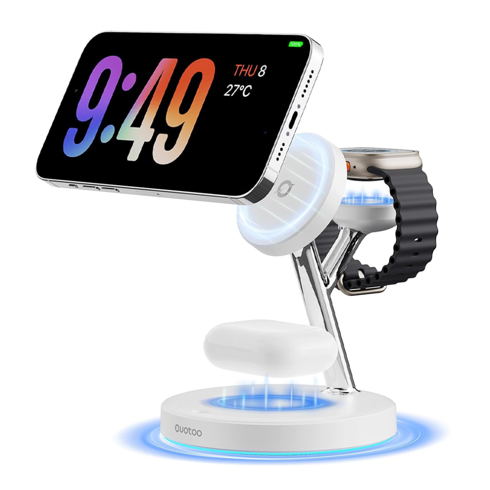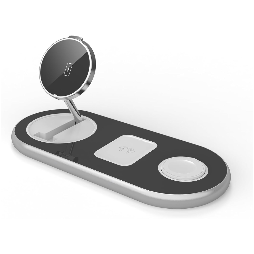 Chronus 3 in 1 wireless charger compatible with Apple, iPhone 15-12 Pro/Pro Max, Airpods magnetic wireless charger, three-in-one charging stand(White)