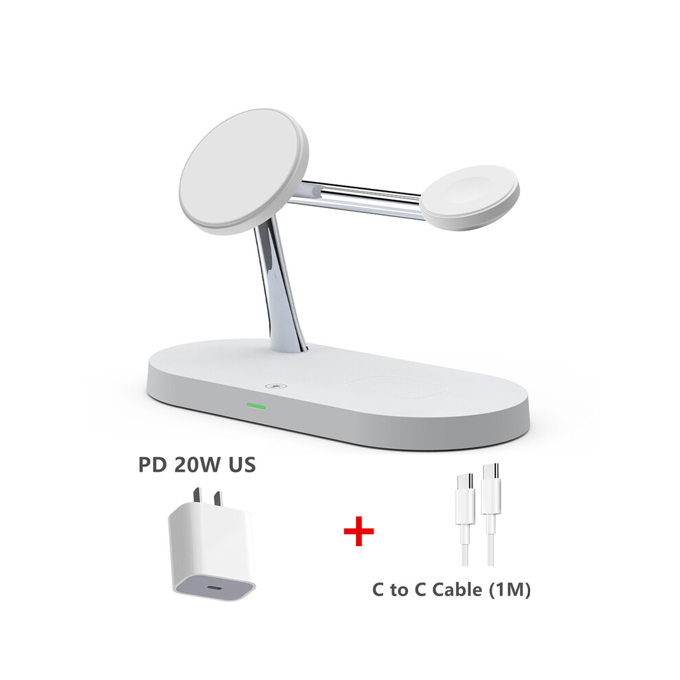 (White with US plug) 3 in 1 wireless charger stand iPhone 12 13 14 Magsafe Charger Airpods