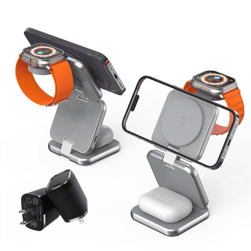 Innovative Wireless Charging Station, 15W Fast Magnetic Charging for iPhone, Apple Watch, AirPods, Portable Travel Charger, Safety Features, Metal Des