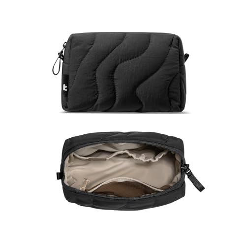 tomtoc Electronics Organiser Travel Pouch, Puffy Accessory Bag for Women, Quilted Cable Bag Tech Pouch for Essentials, Cord, Charger, Airpods, Portable Storage Organiser for Cosmetics, Daily Items