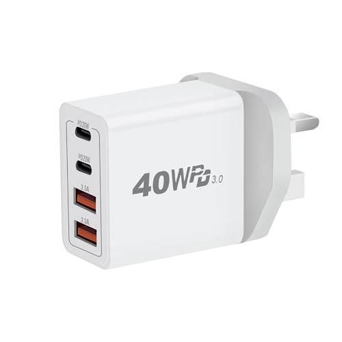 40W 4-Port Fast USB C Charger with Dual PD & QC - Wall Charger for iPhone 12-11, AirPods & Android