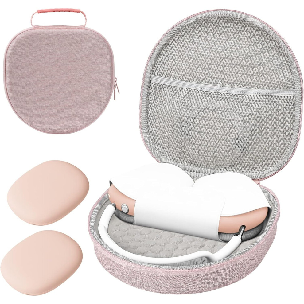 Elonbo Hard Carrying Case for Apple AirPods Max Wireless Over-Ear Headphones, New AirPods Max Bluetooth Headphones Travel Protective Cover Earphone Protector Storage Bag,Extra Space fits Charger.Pink