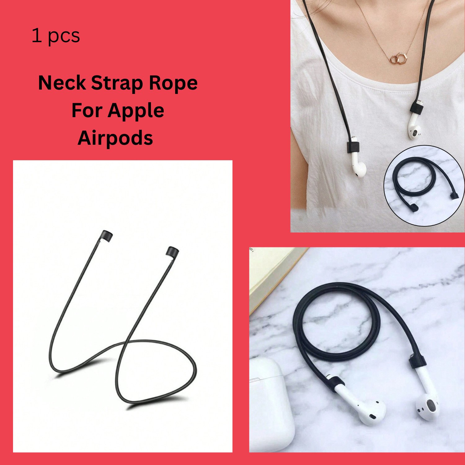 Podstring New Version of Anti-Lost Strap for Wireless in-Ear Earbuds, Airpod Lanyard (Compatible with Airpods Pro 1 2 3, Sony, Beats, Samsung, Bose) - Black