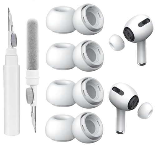 4 Pair Replacement Ear Tips for Airpods Pro 1/2 with 3 in1 Cleaning pen,White Silicone Ear Tips for Airpods pro with Portable Storage Box (XS/S/M/L)