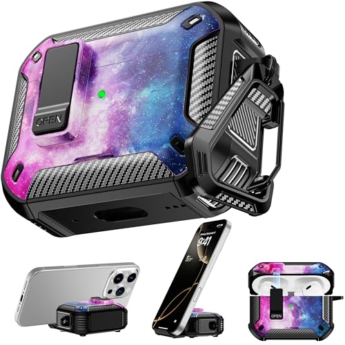 RFUNGUANGO Compatible AirPods Pro 2nd Generation / 1st Generation Protective Case with Phone Holder and Compatible Back Magnetic Suction Function, Suitable for AirPods Pro 2 Case, Black+Starry Sky