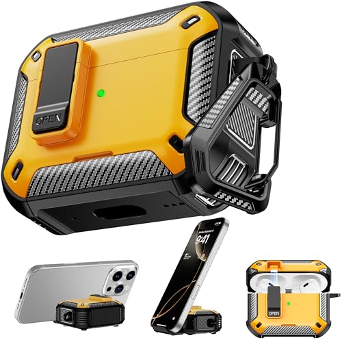 RFUNGUANGO Compatible AirPods Pro 2nd Generation / 1st Generation Protective Case with Phone Holder and Compatible Back Magnetic Suction Function, Suitable for AirPods Pro 2 Case, Yellow