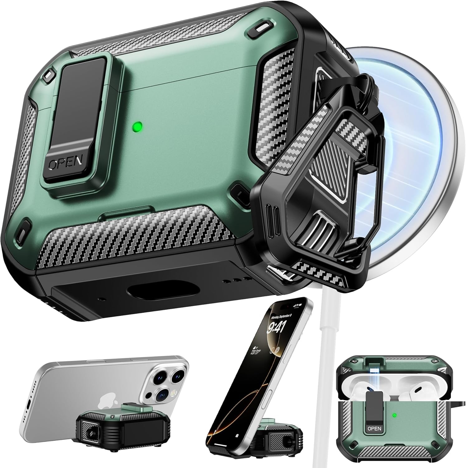 RFUNGUANGO Compatible AirPods Pro 2nd Generation / 1st Generation Protective Case with Phone Holder and Compatible Back Magnetic Suction Function, Suitable for AirPods Pro 2 Case, Green
