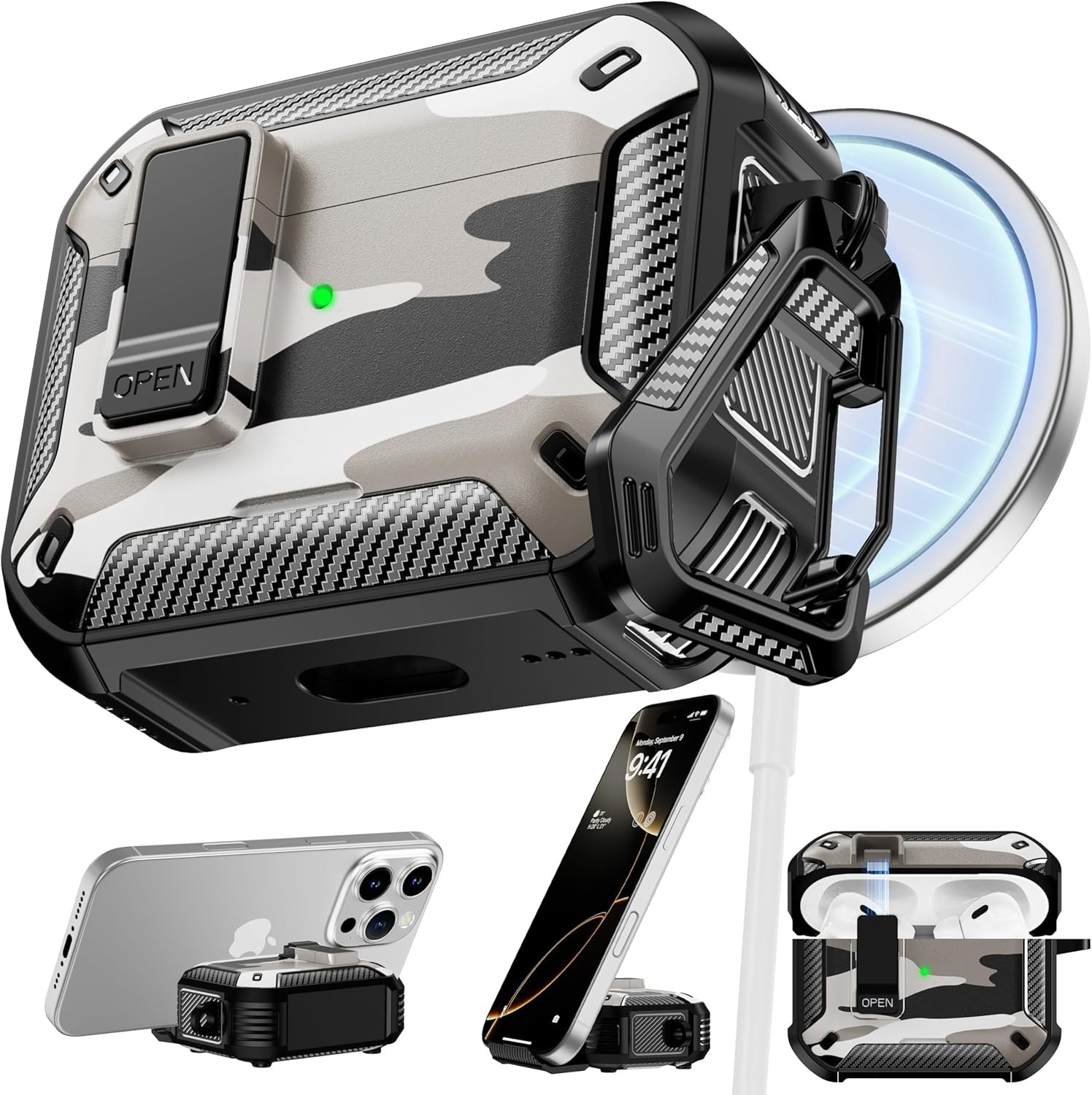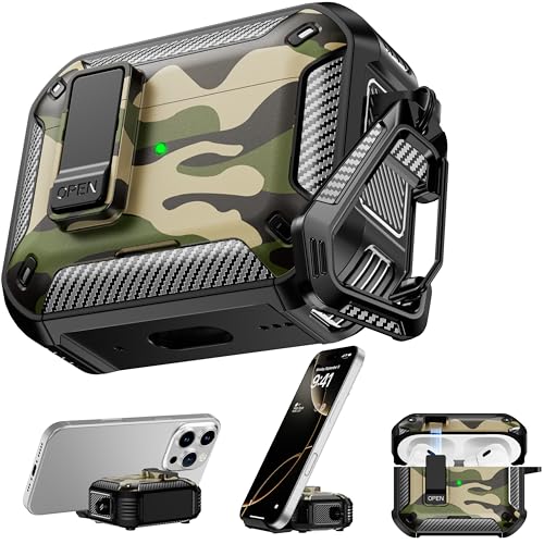 RFUNGUANGO Compatible AirPods Pro 2nd Generation / 1st Generation Protective Case with Phone Holder and Compatible Back Magnetic Suction Function, Suitable for AirPods Pro 2 Case, Black+Camouflage
