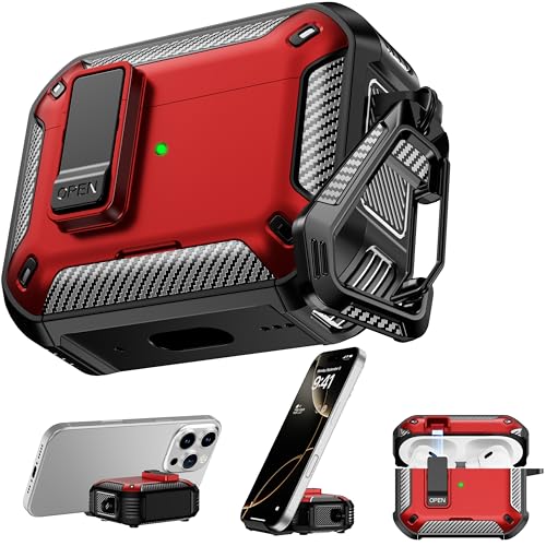 RFUNGUANGO Compatible AirPods Pro 2nd Generation / 1st Generation Protective Case with Phone Holder and Compatible Back Magnetic Suction Function, Suitable for AirPods Pro 2 Case, Red