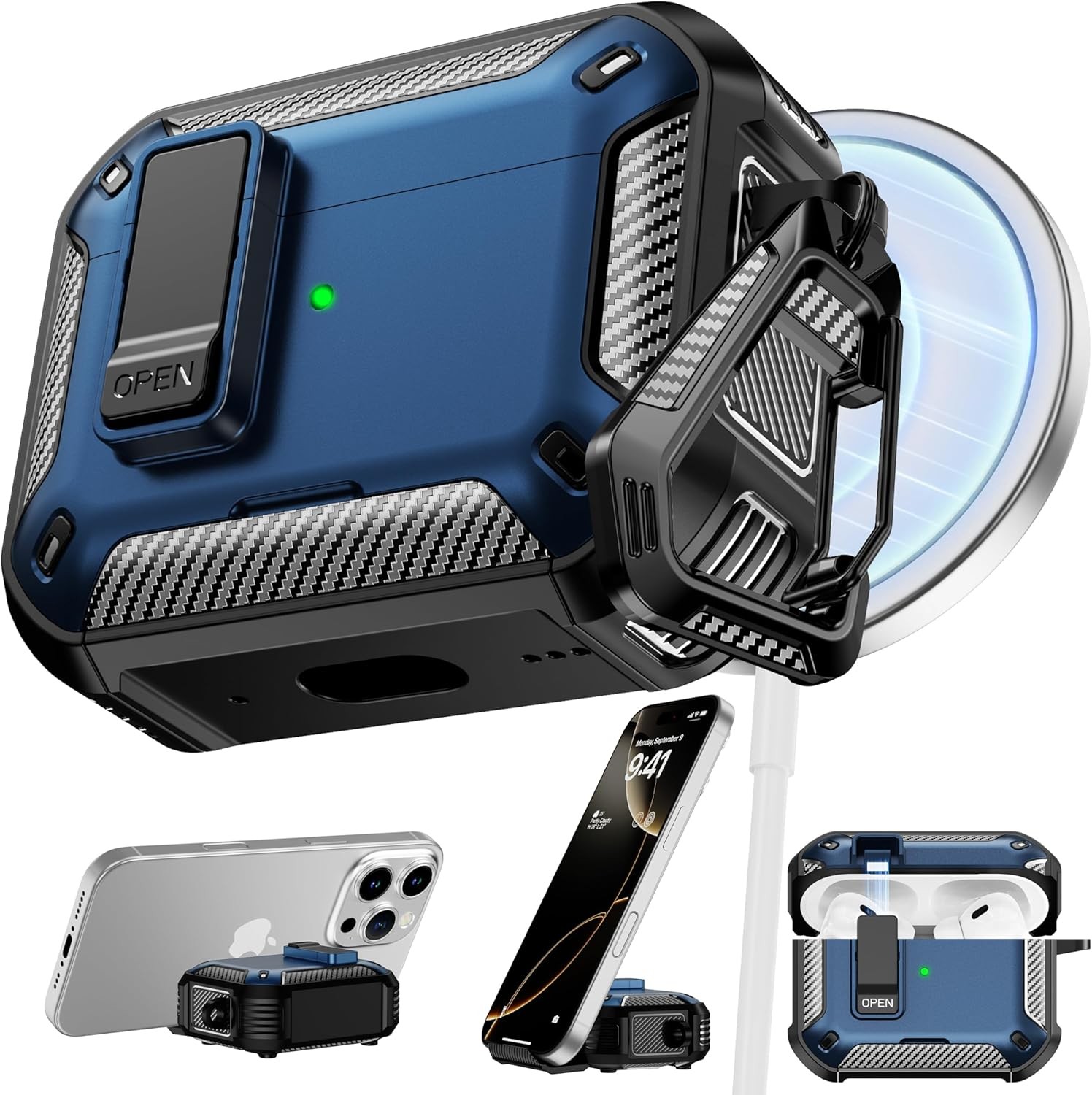 RFUNGUANGO Compatible AirPods Pro 2nd Generation / 1st Generation Protective Case with Phone Holder and Compatible Back Magnetic Suction Function, Suitable for AirPods Pro 2 Case, Blue