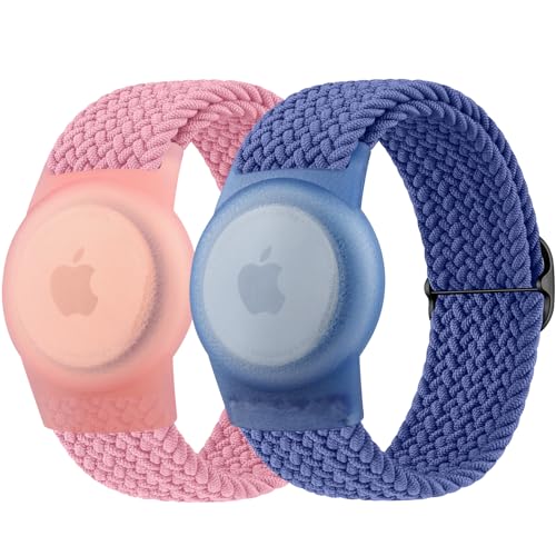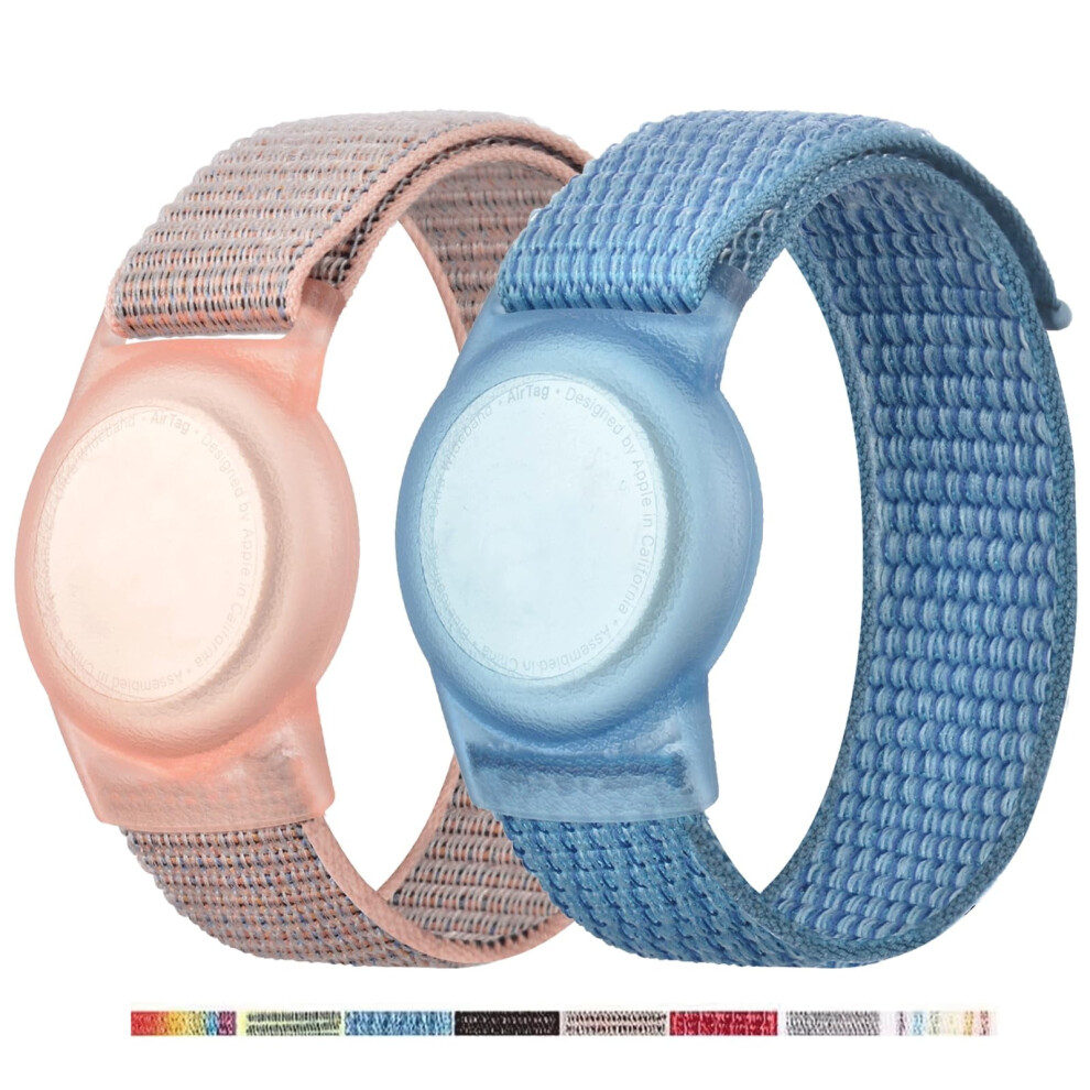 Dingfeiyu 2 Pack Nylon Airtag Wristband for Kids Adult, Adjustable Airtag Waterproof Bracelet Toddler Children Adult Elders, Wristbands Compatible with Airtags (pink + blue)