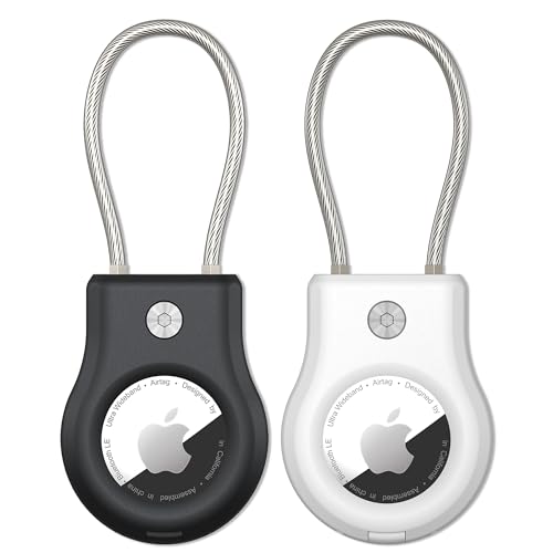 SCALLOP Airtag Keychain Holder 2 Pack, Air Tag Lock Case Holders with Wire Cable, Sturdy Protection Airtag Key Chain, Compatible Apple Airtag for Key ring,Keys, Luggage.Black
