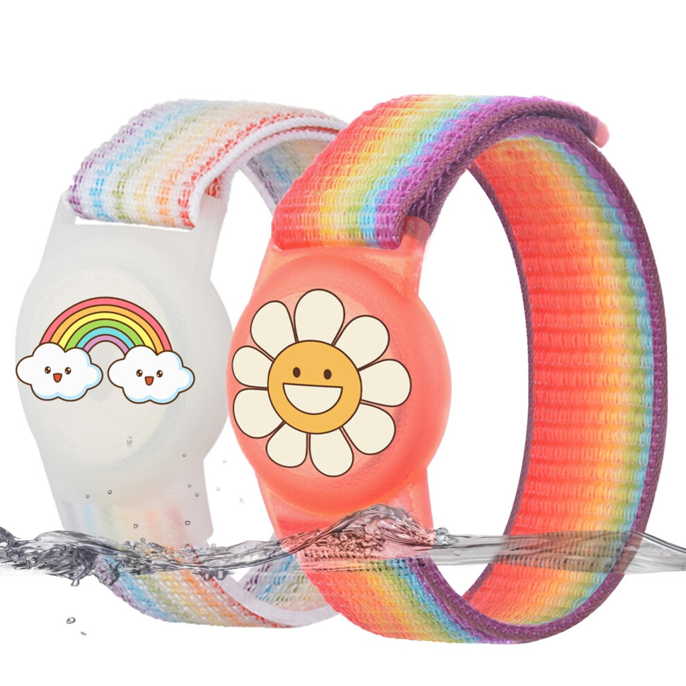 Dingfeiyu Pack of 2 Children's Airtag Scratch-Resistant GPS Airtag Bracelet for Children or Adults (Rainbow Colour x 2)