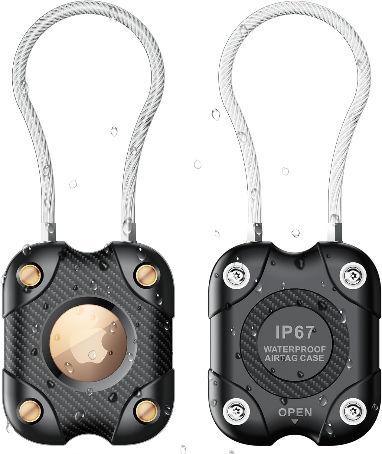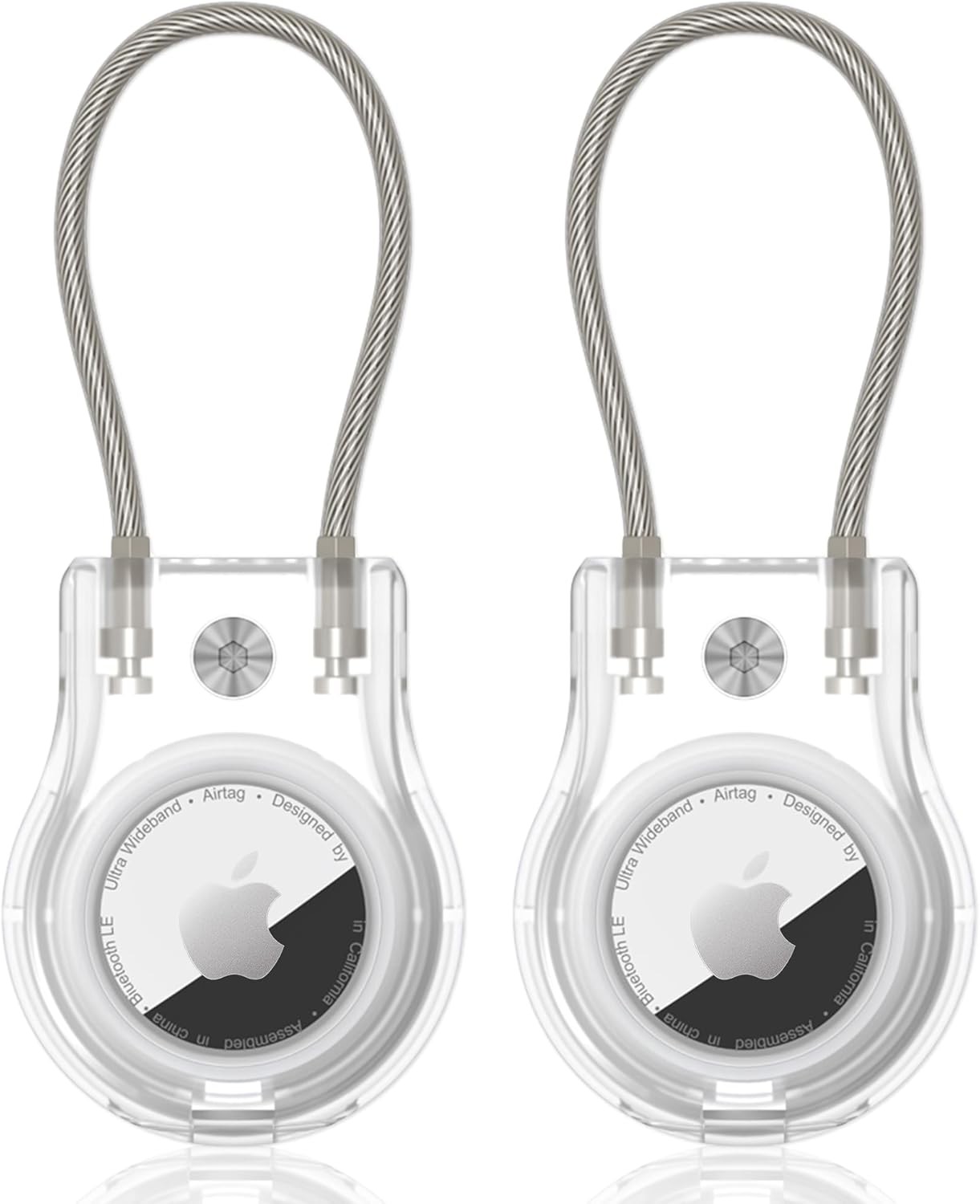 2 Pack Airtag Holder with Wire Cable, Secure Lock AirTag Keyring,IPX7 Waterproo