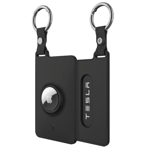TUDIA Card Holder Case Designed for Tesla Key Card with Airtag Slot - [2 Pack] KeyCard cover for Model 3 Y S X Cybertruck with Carabiner & Scratch-Resistant Protective Card Film (Black)