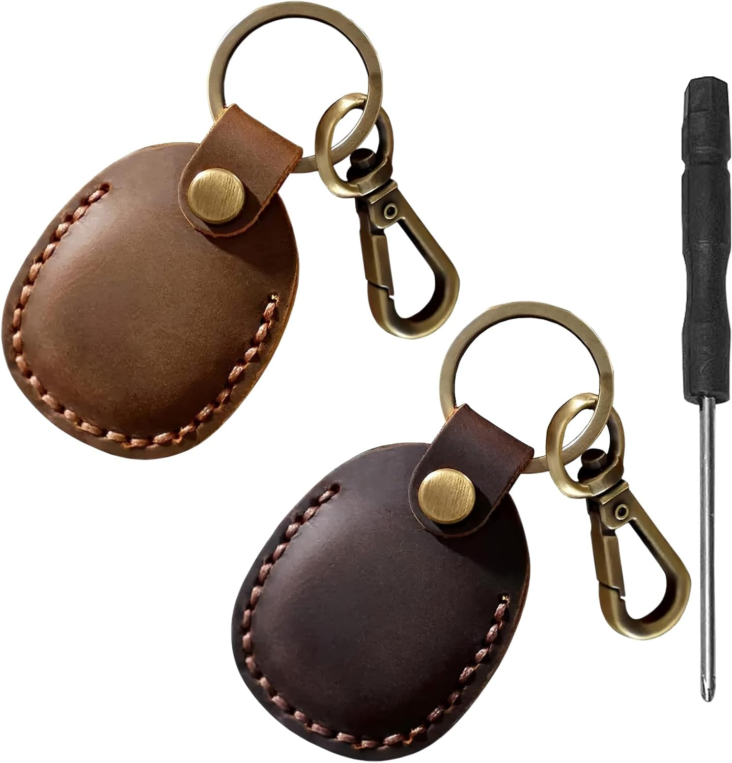 For Airtag Keyring Holder 2 Pack-Genuine Leather Air Tag with Cross Screwdriver,